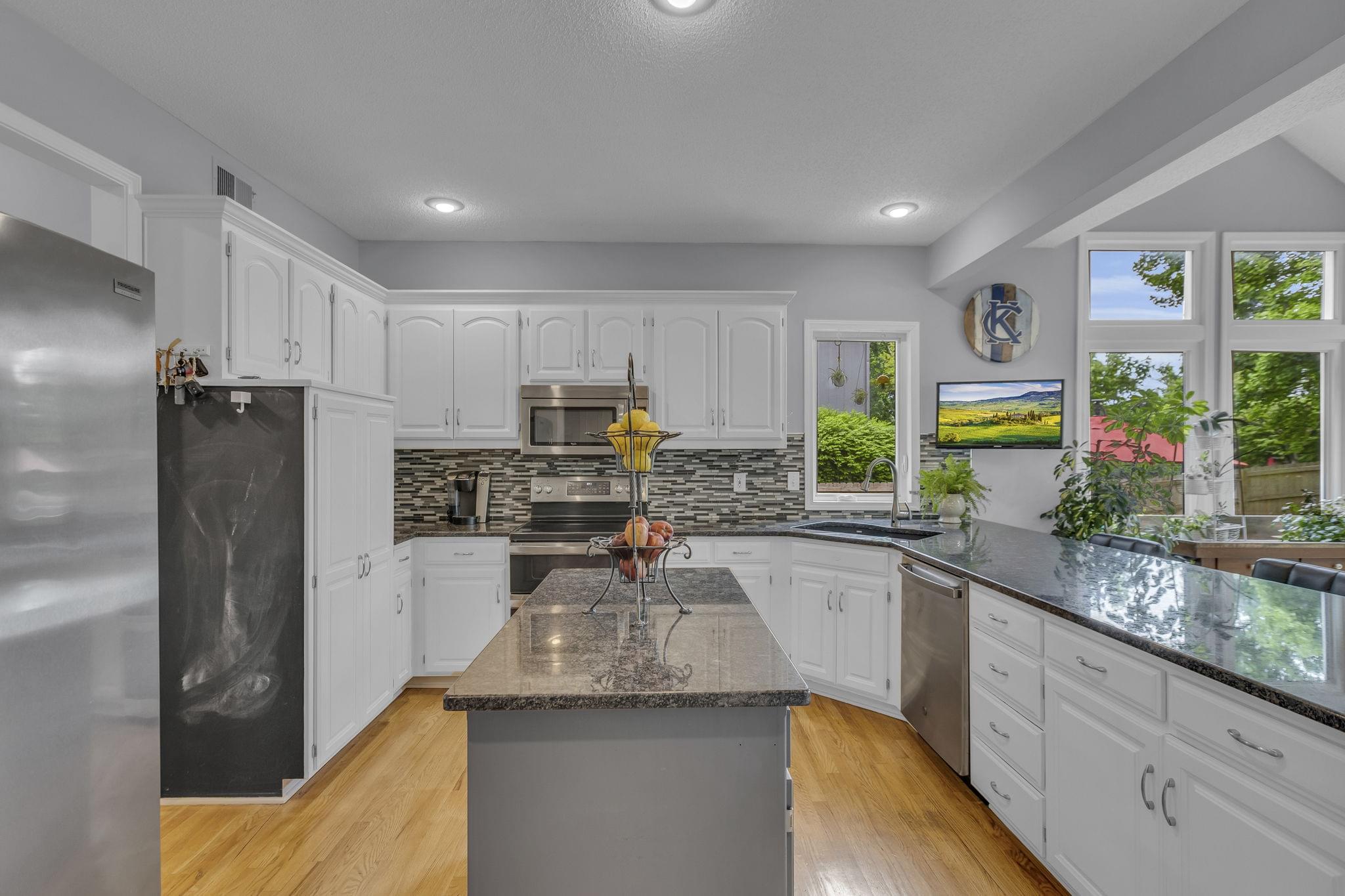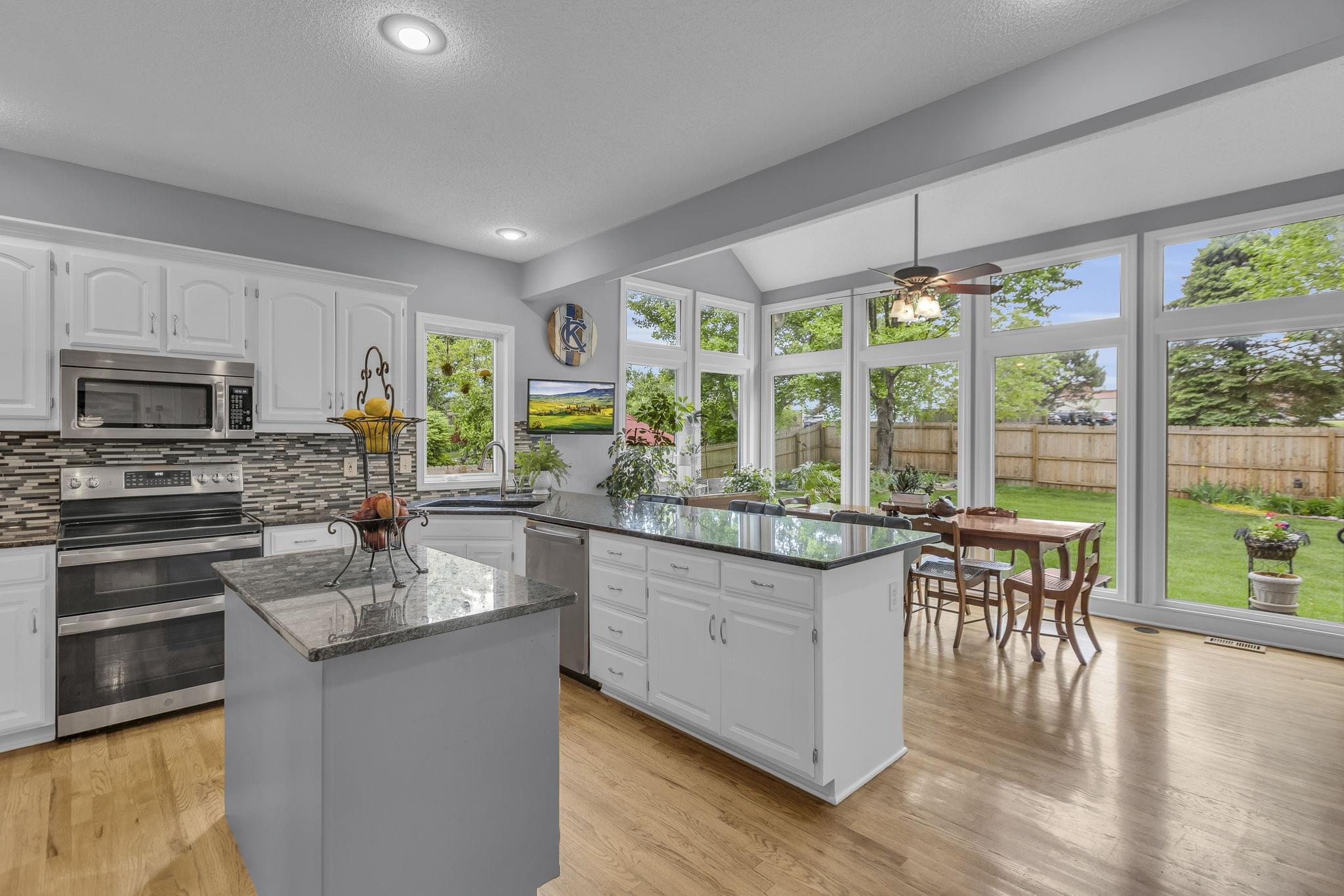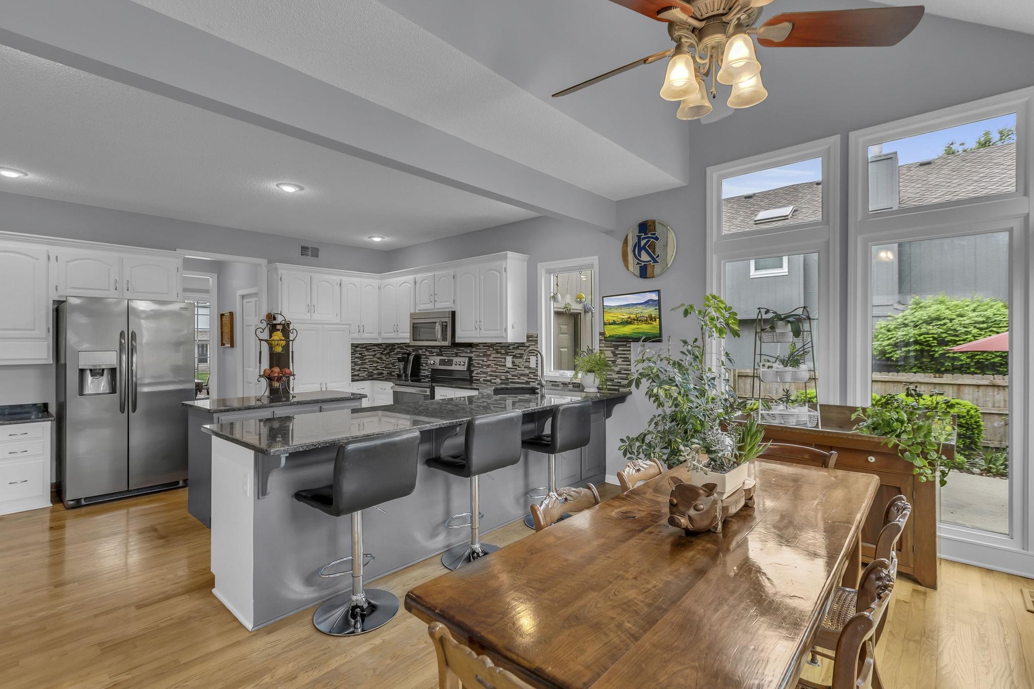 Located in Overland Park’s established Scenic Woods subdivision, this expansive two-story offers over 3,600 sq. ft. of versatile living designed for comfort, connection, and memorable moments. At the heart of the home, the updated kitchen features granite countertops and a large, window-lined dining area that looks out onto manicured gardens and a cedar privacy-fenced yard. The kitchen flows directly into a warm, inviting great room anchored by a fireplace—creating a true gathering space for family and friends.