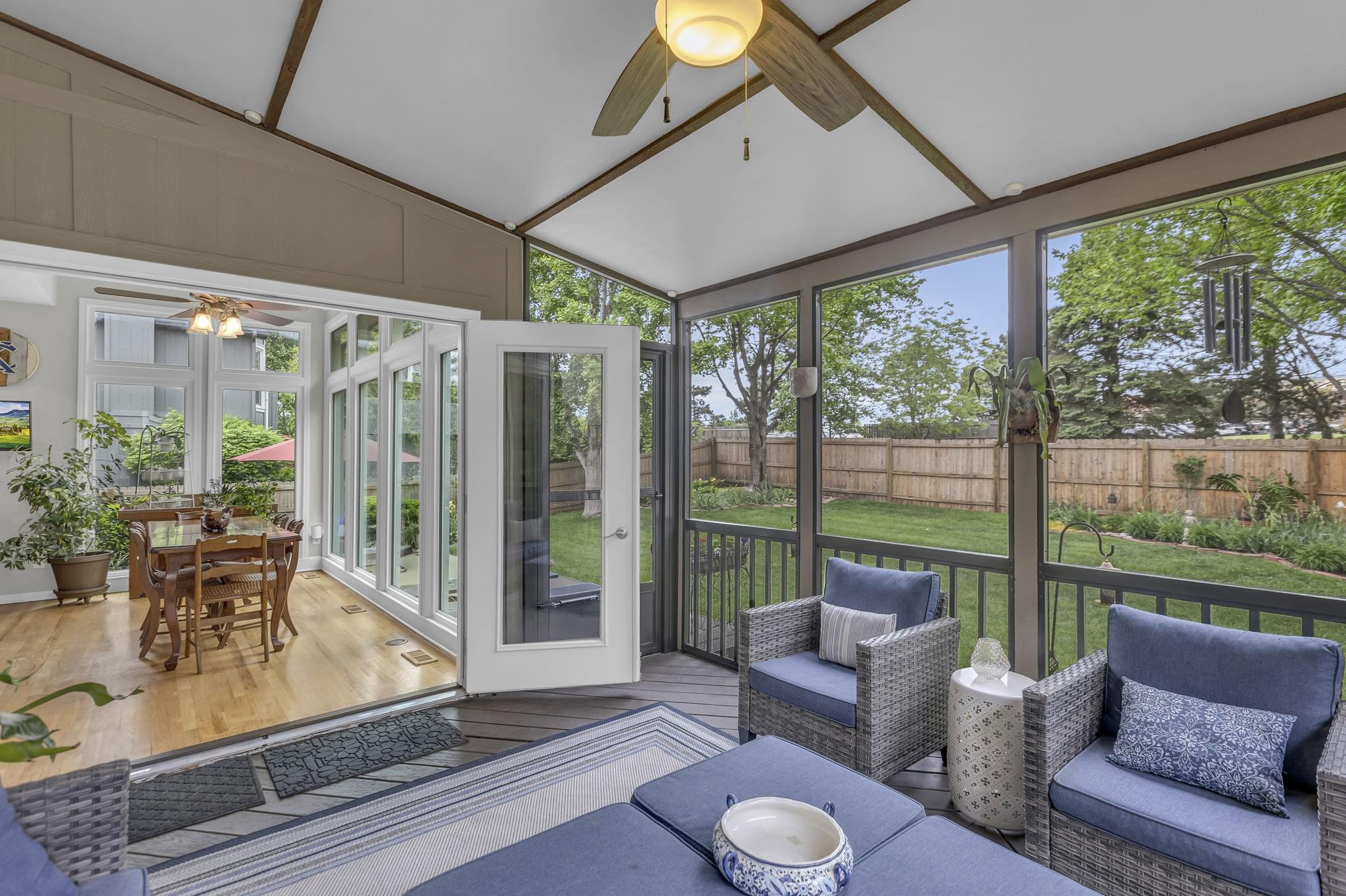Two sets of French doors open from the kitchen to a screened-in porch, blurring the line between indoors and out. Open both, and the breeze, light, and natural views pour in—perfect for morning coffee or relaxed evenings at home.