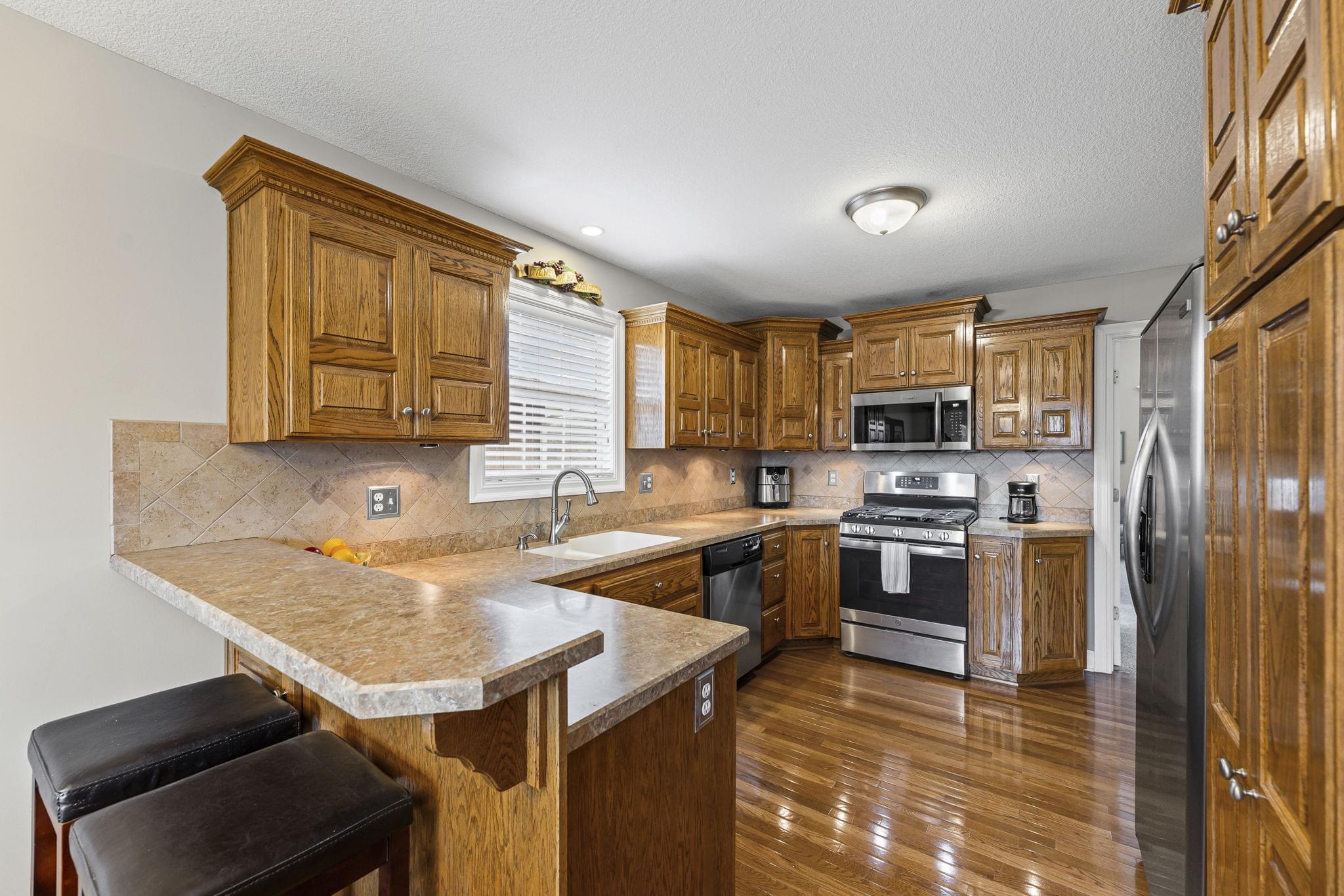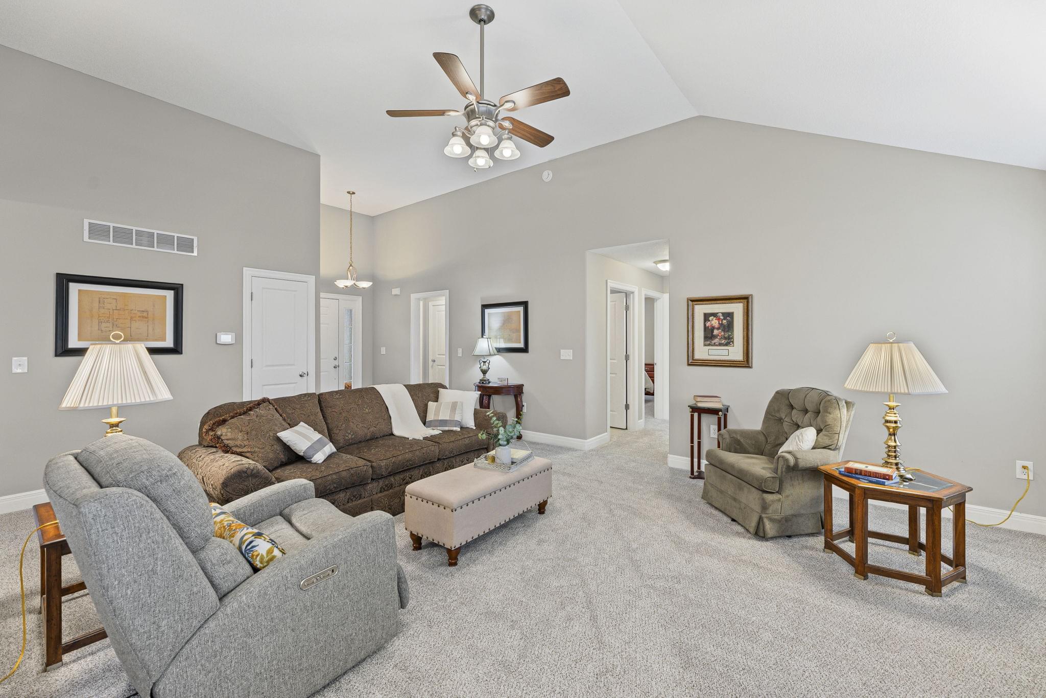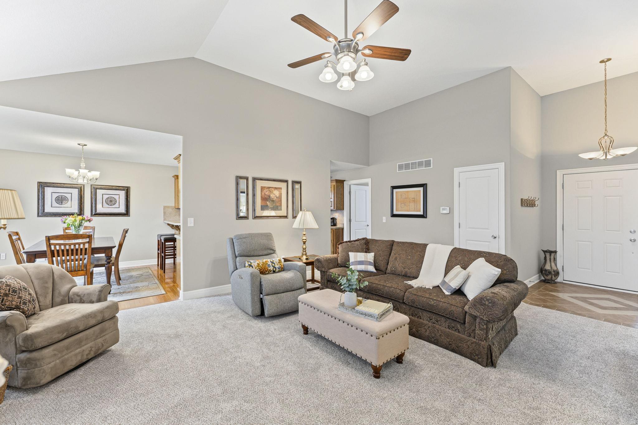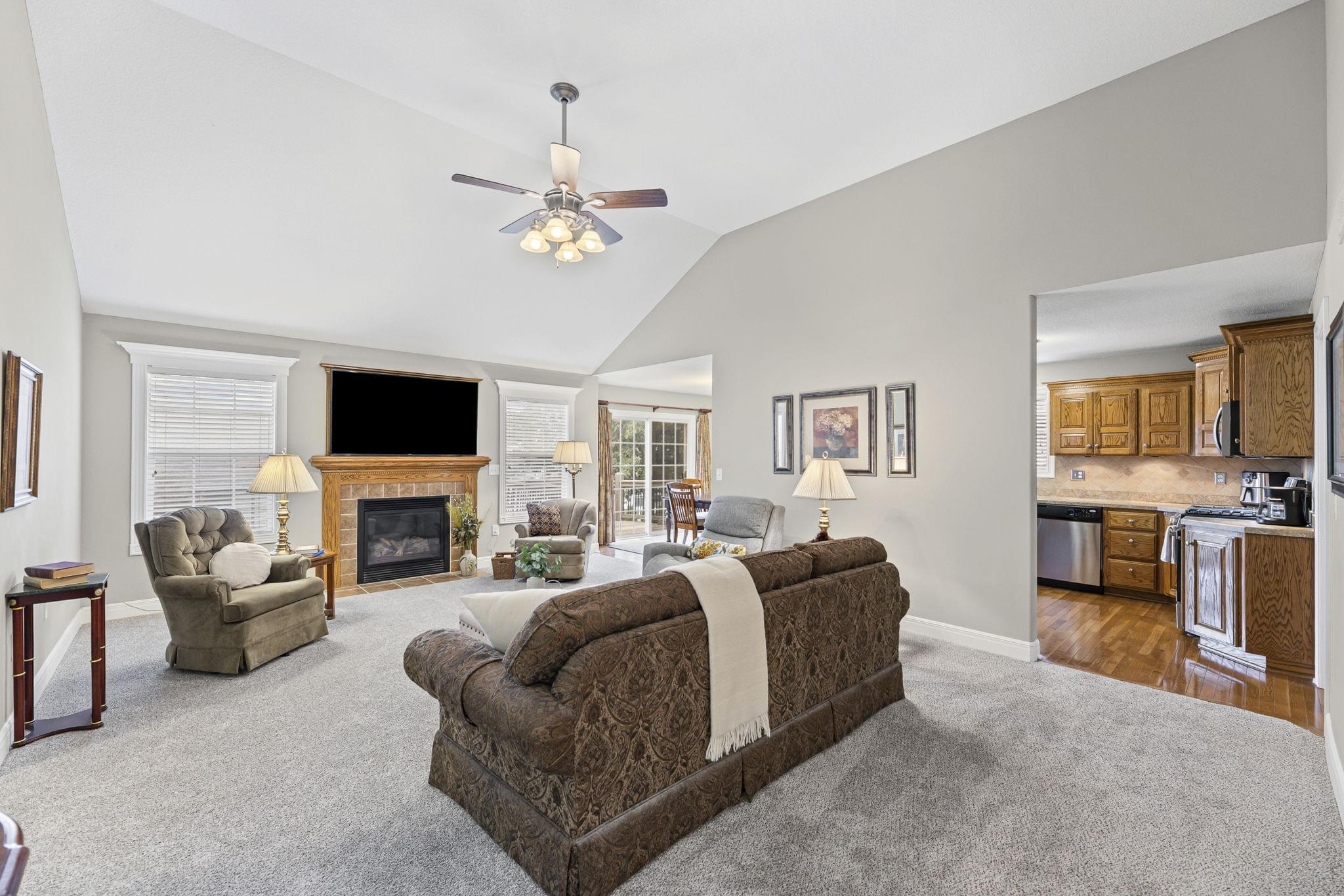 Tidy curb appeal, a functional floor plan, and space where it counts — this Pinehurst South ranch keeps things simple. Inside, soaring ceilings add extra volume to the main living area, while the kitchen keeps it classic with stainless steel appliances and warm wood finishes.