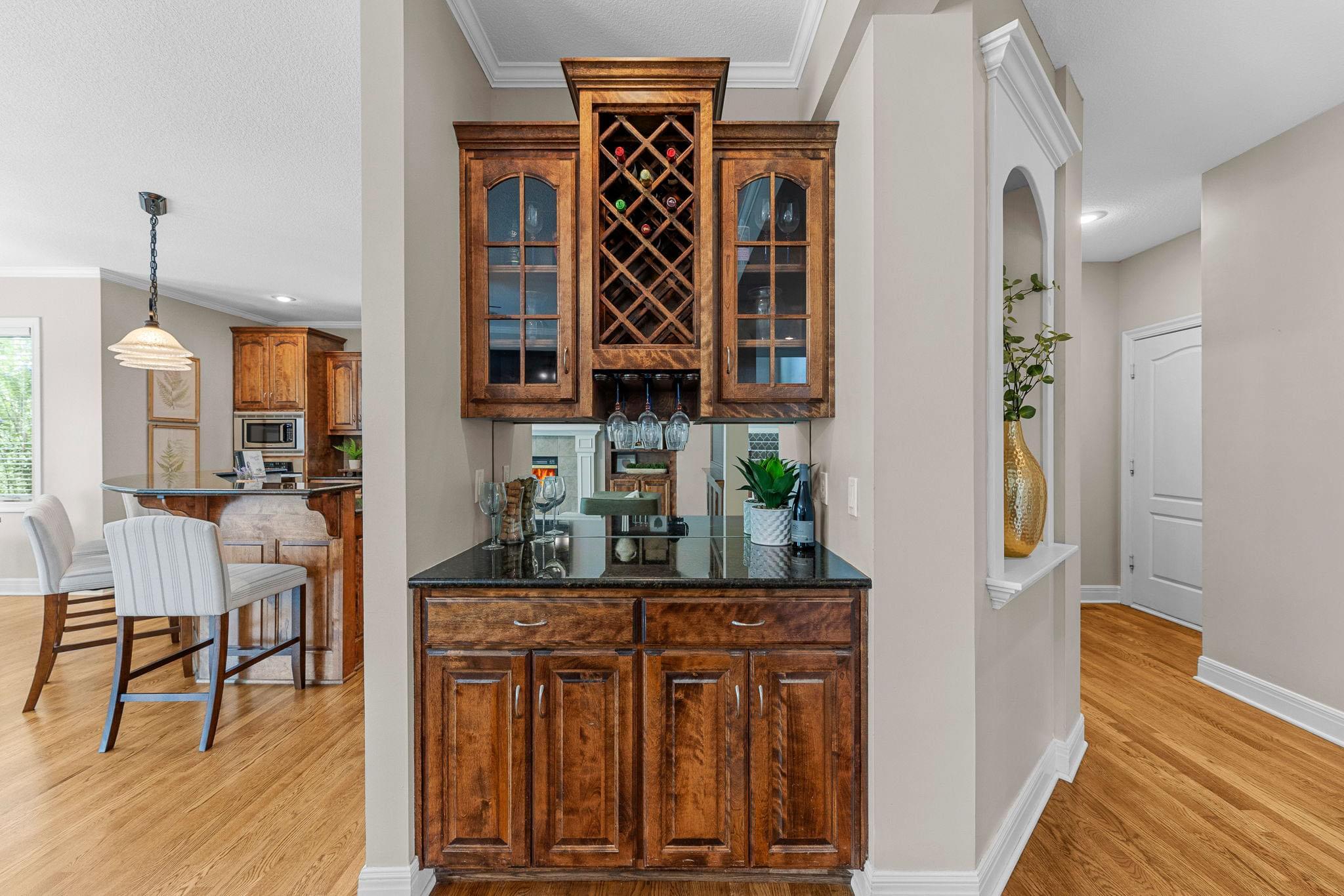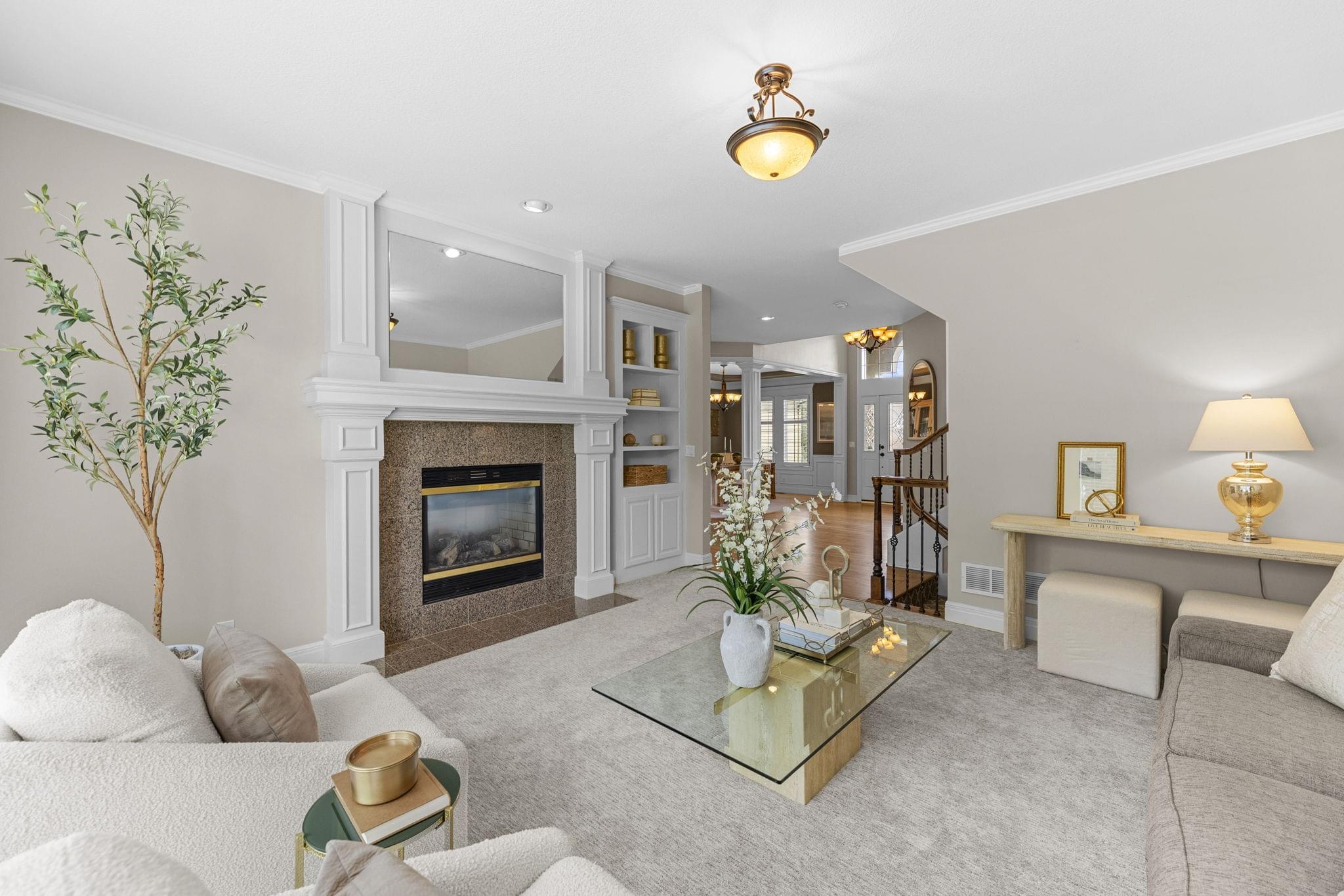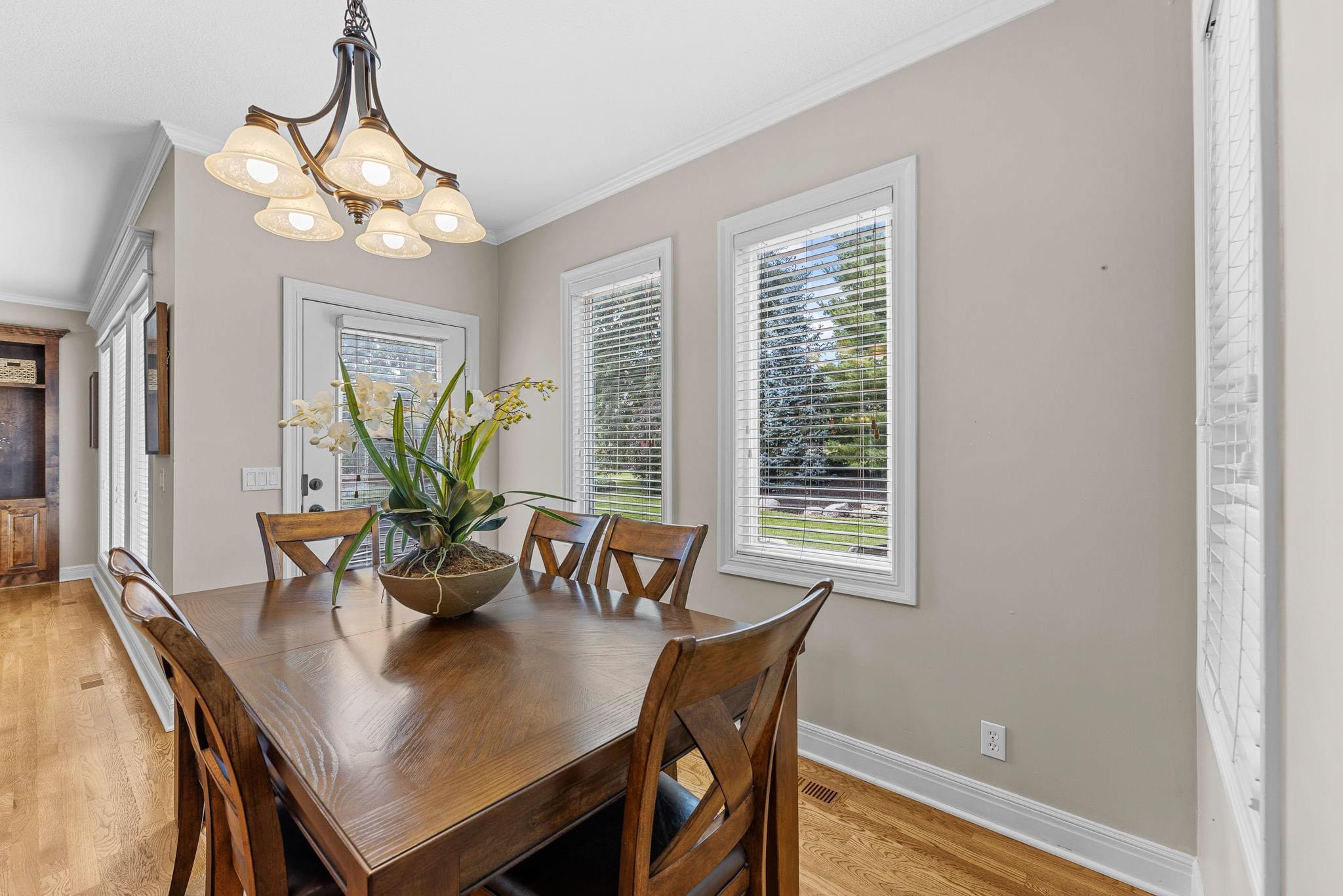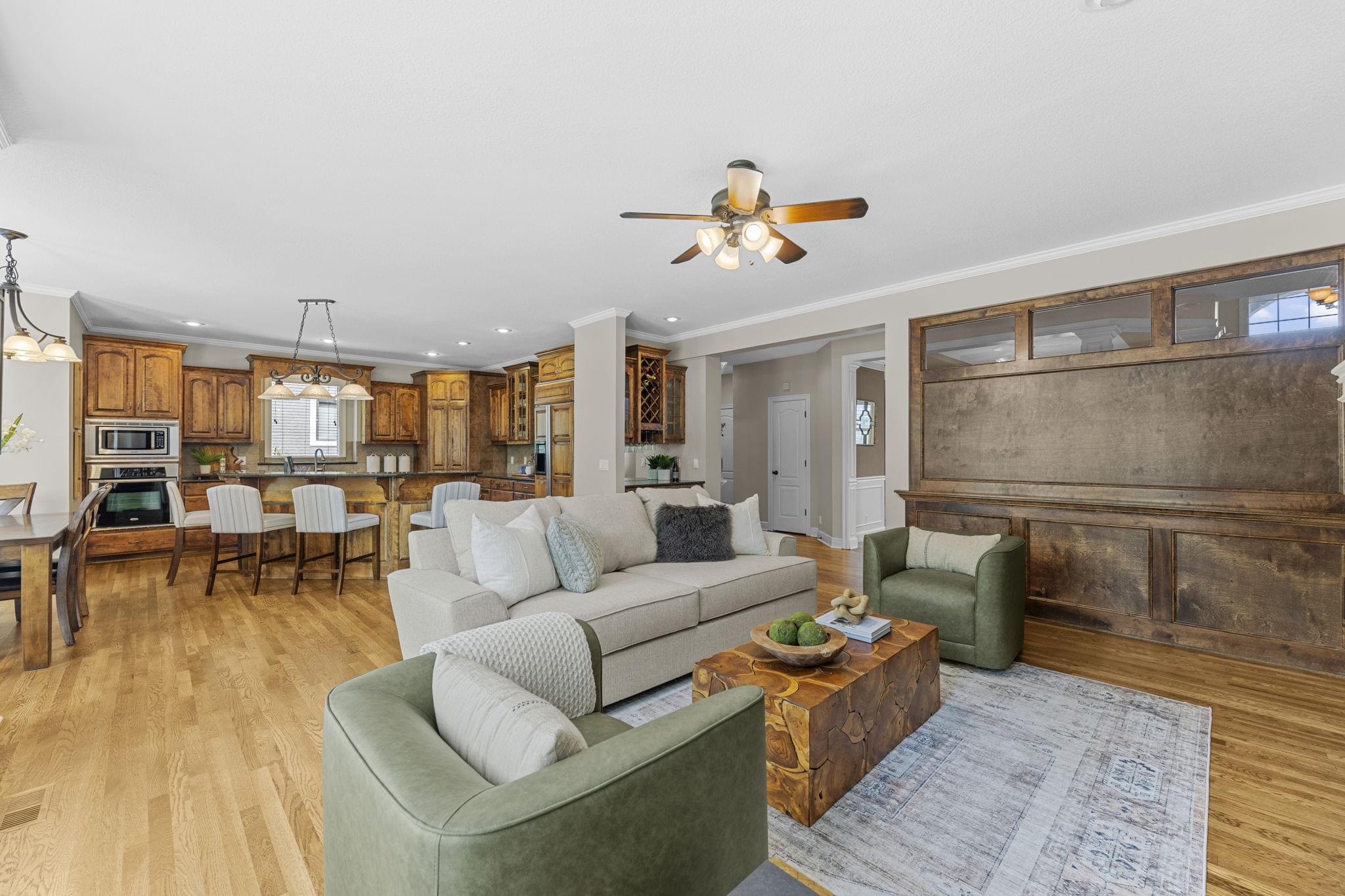 The main level was made for connection. Wood floors add warmth and character, guiding you from the dining room to the great room, where a fireplace and built-ins set the tone for relaxed living. Nearby, the kitchen blends style and function with stainless appliances, granite counters, and a walk-in pantry.
