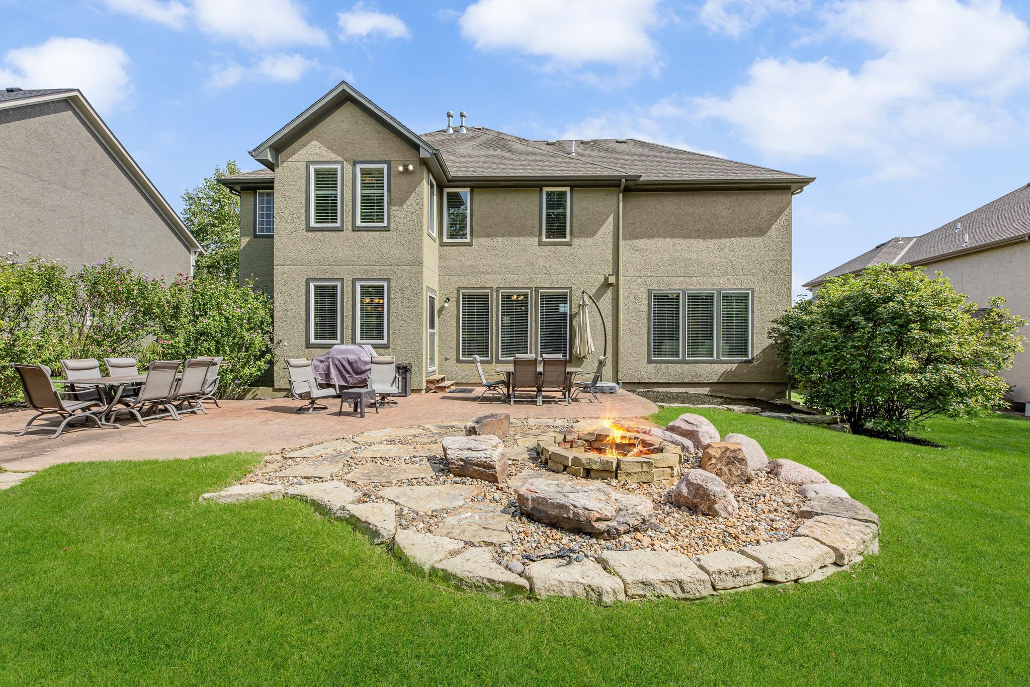 Step outside and the story continues: a patio framed by landscaping and a built-in firepit, designed for evenings that don’t end too soon. Set within Blue Valley Schools and just minutes to shopping, dining, and parks, this is Wilderness Valley living at its best.