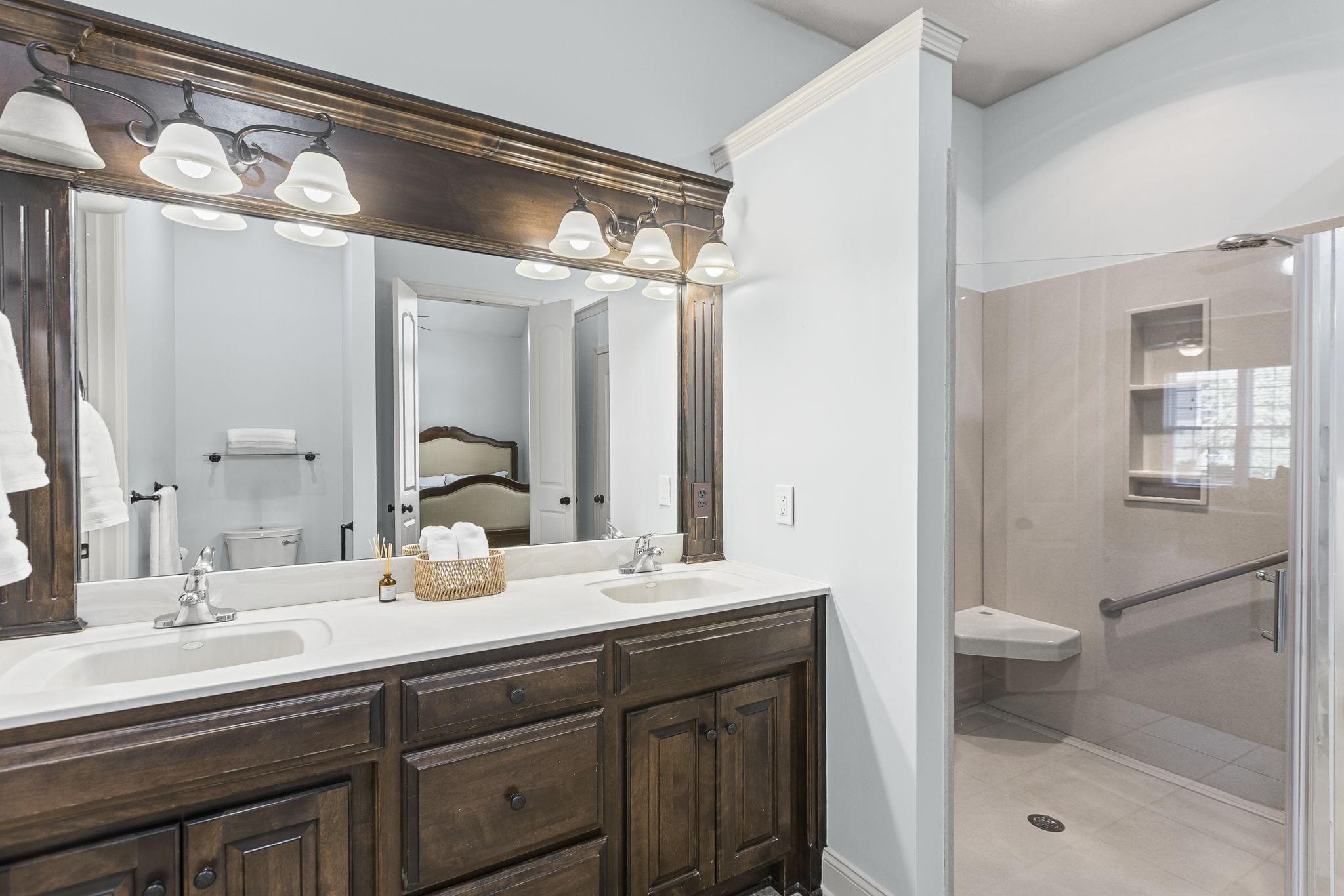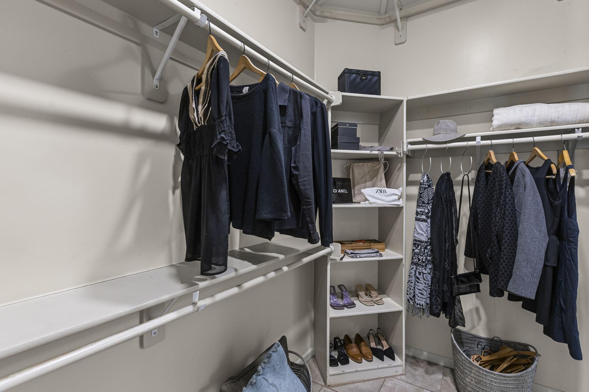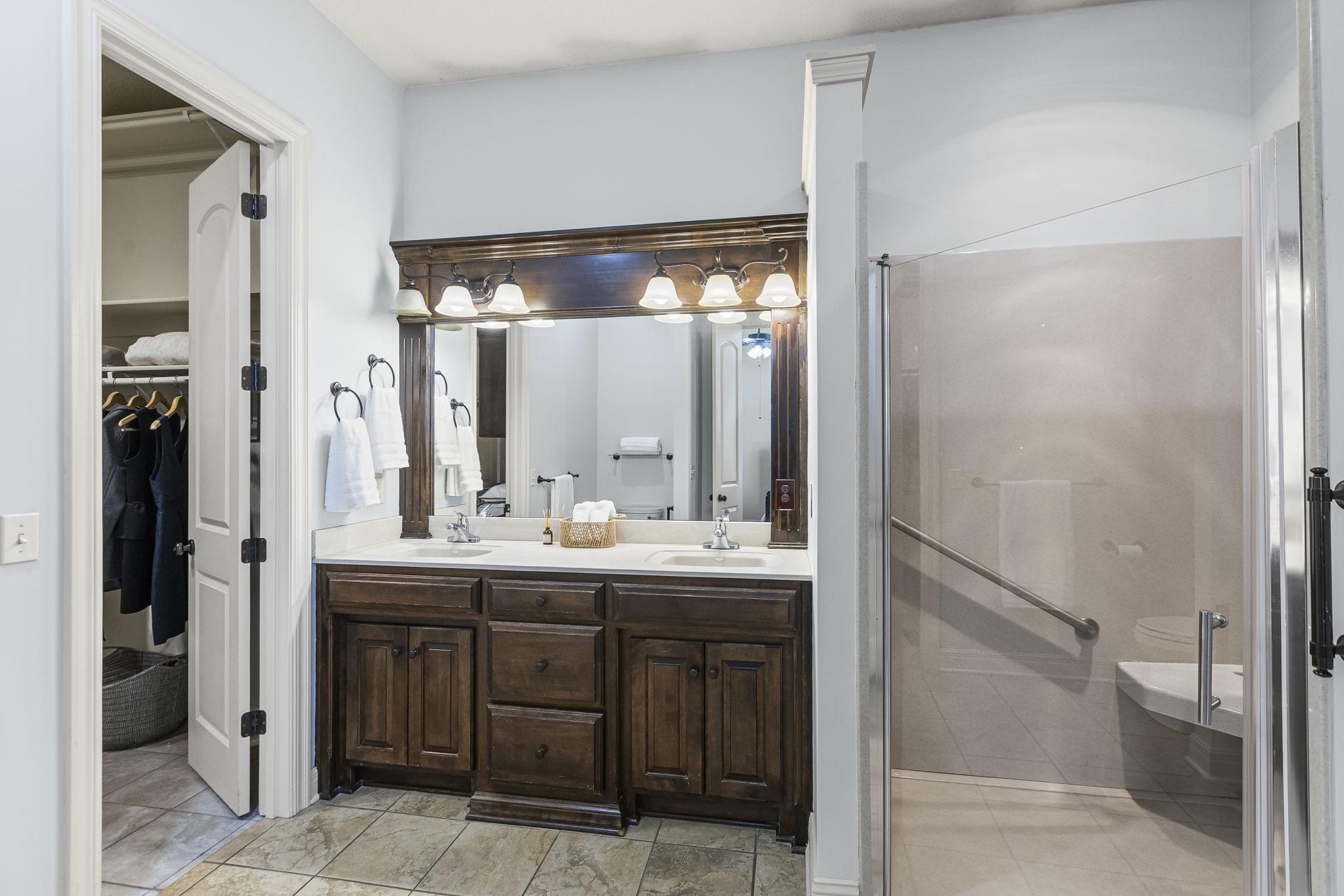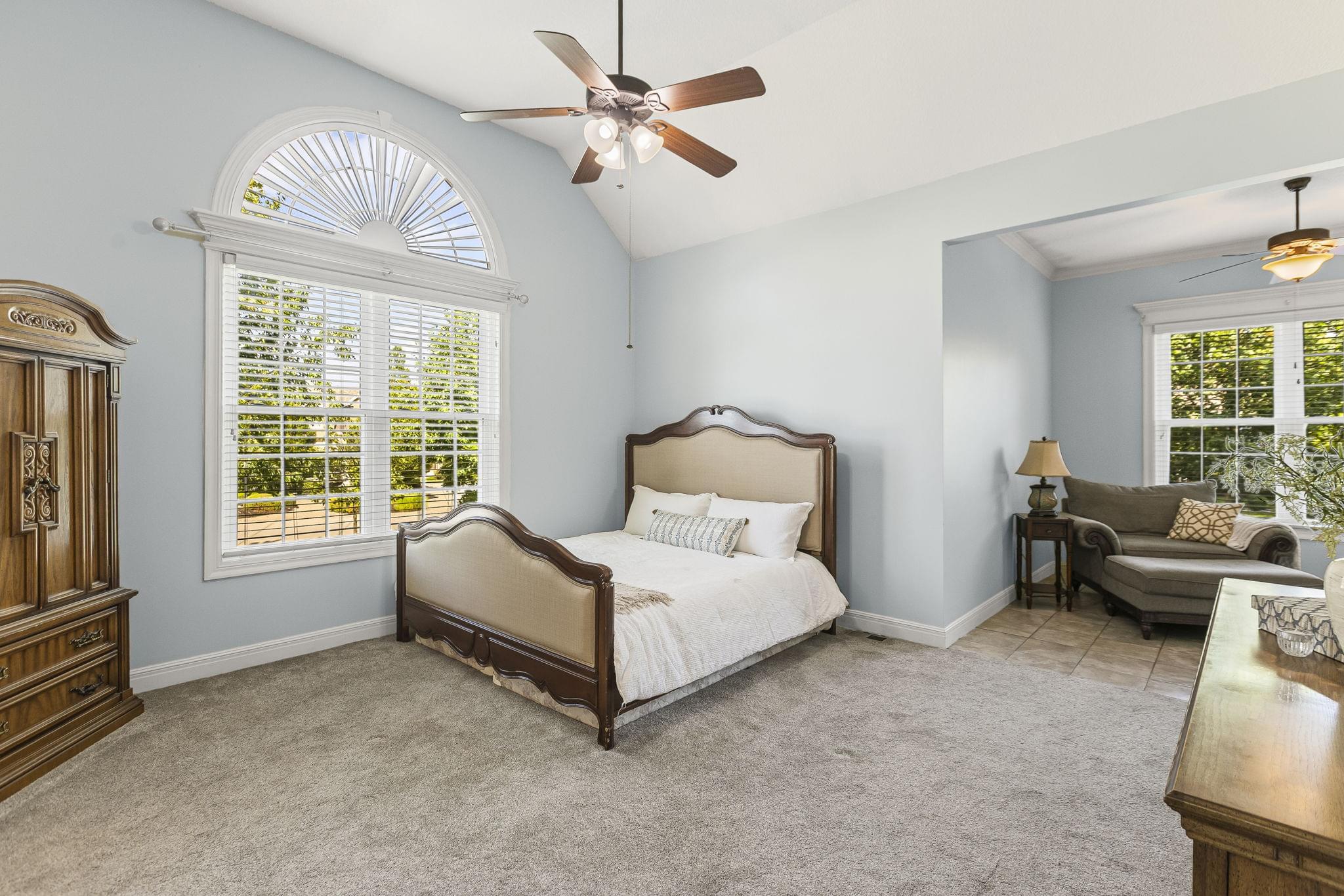 Designed with comfort and space in mind, the primary suite delivers more than expected. Beyond the large sleeping area, an 11' x 9' sitting room offers a perfect corner for morning coffee or evening reading—plus private deck access. Triple-pane windows enhance energy efficiency, and the updated bath includes dual vanities and a zero-entry shower. Laundry and closet access from both hallway and bedroom keeps everything within easy reach.