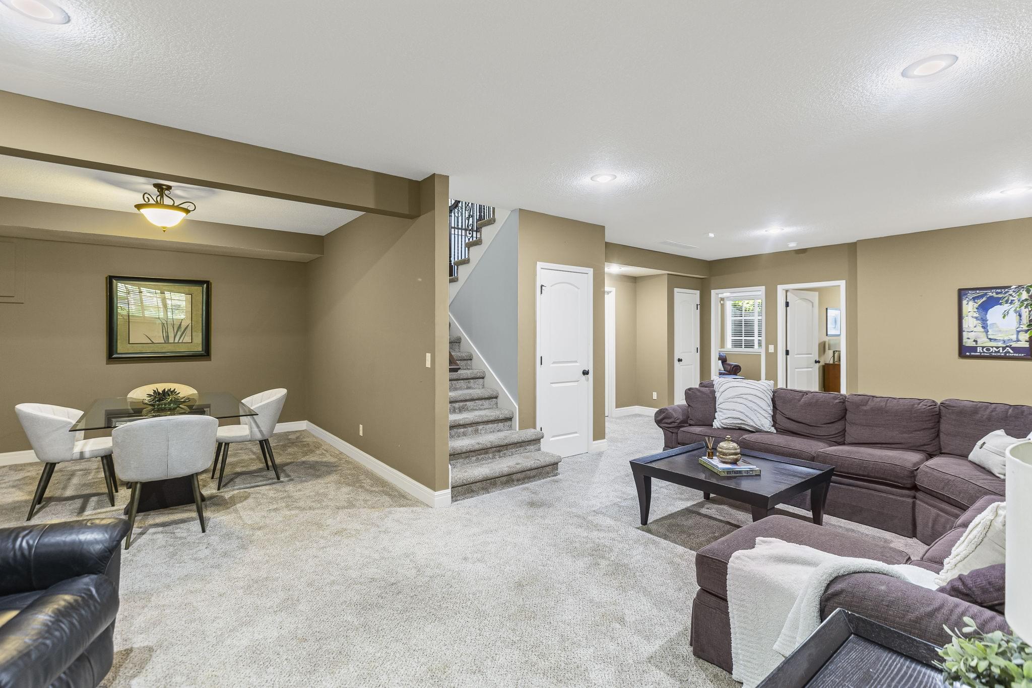 Downstairs, the finished lower level opens to a large family room, two additional bedrooms, a full bath, and plenty of storage. Outdoors, the shaded deck - featuring covered and open areas, self-watering planters, and a view of the maintained common green - extends your living space in all the best ways.