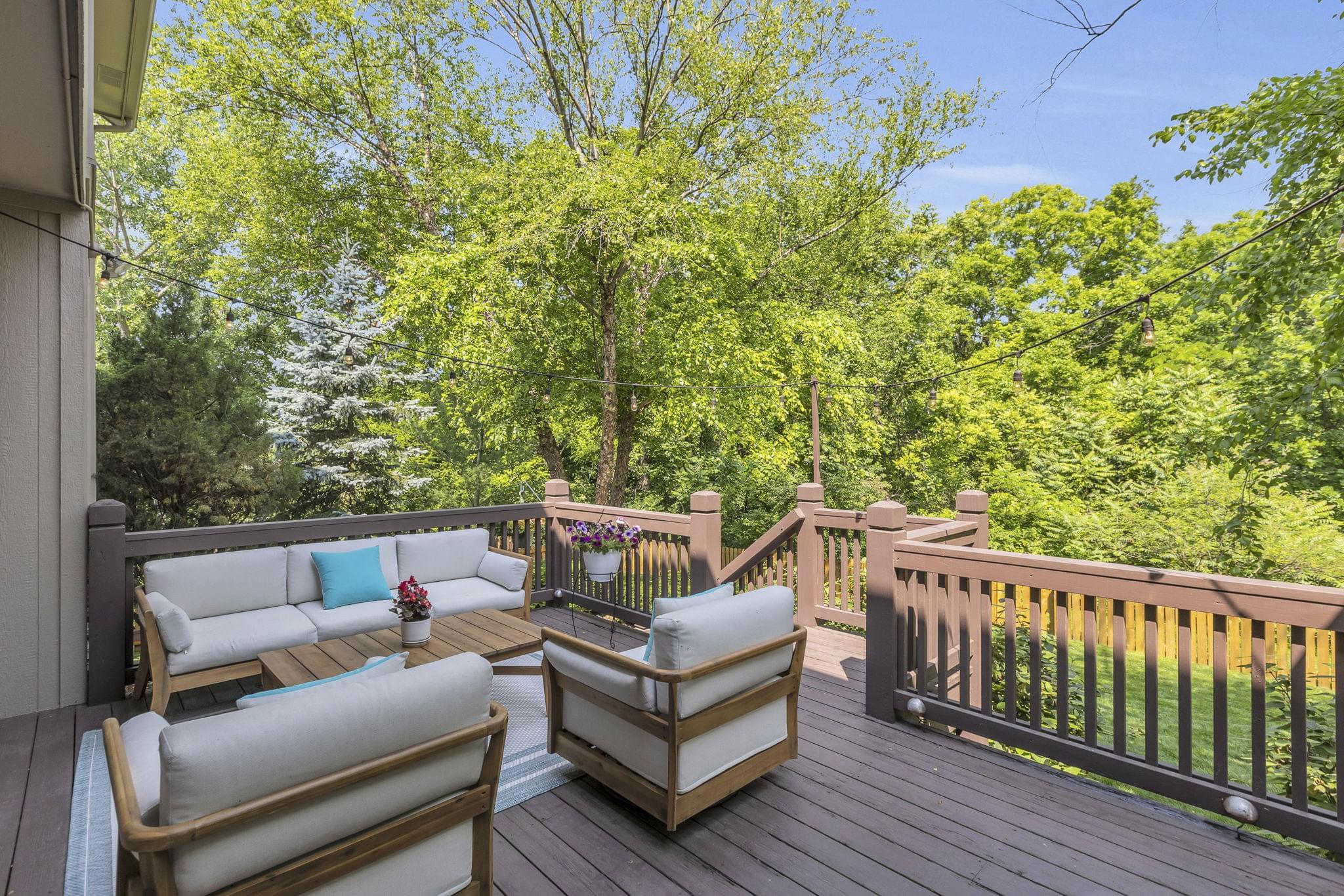 Tucked at the end of a cul-de-sac and backing to lush treed green space, this beautifully updated two-story offers refined living inside and out. Enjoy the elevated deck, spacious patio, and treed backdrop—this backyard offers the kind of space that's hard to find. A fenced lawn completes the outdoor setup, ideal for relaxing or gathering.