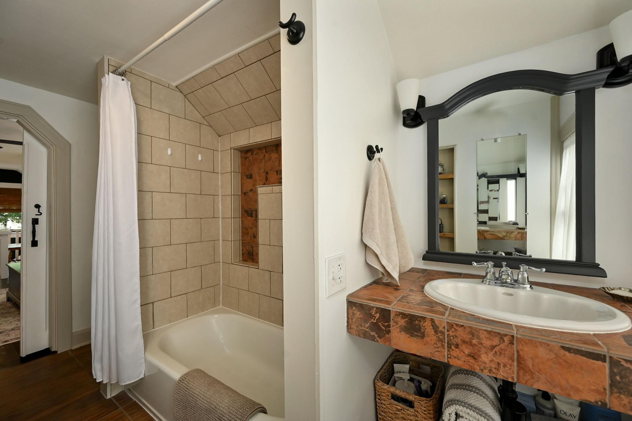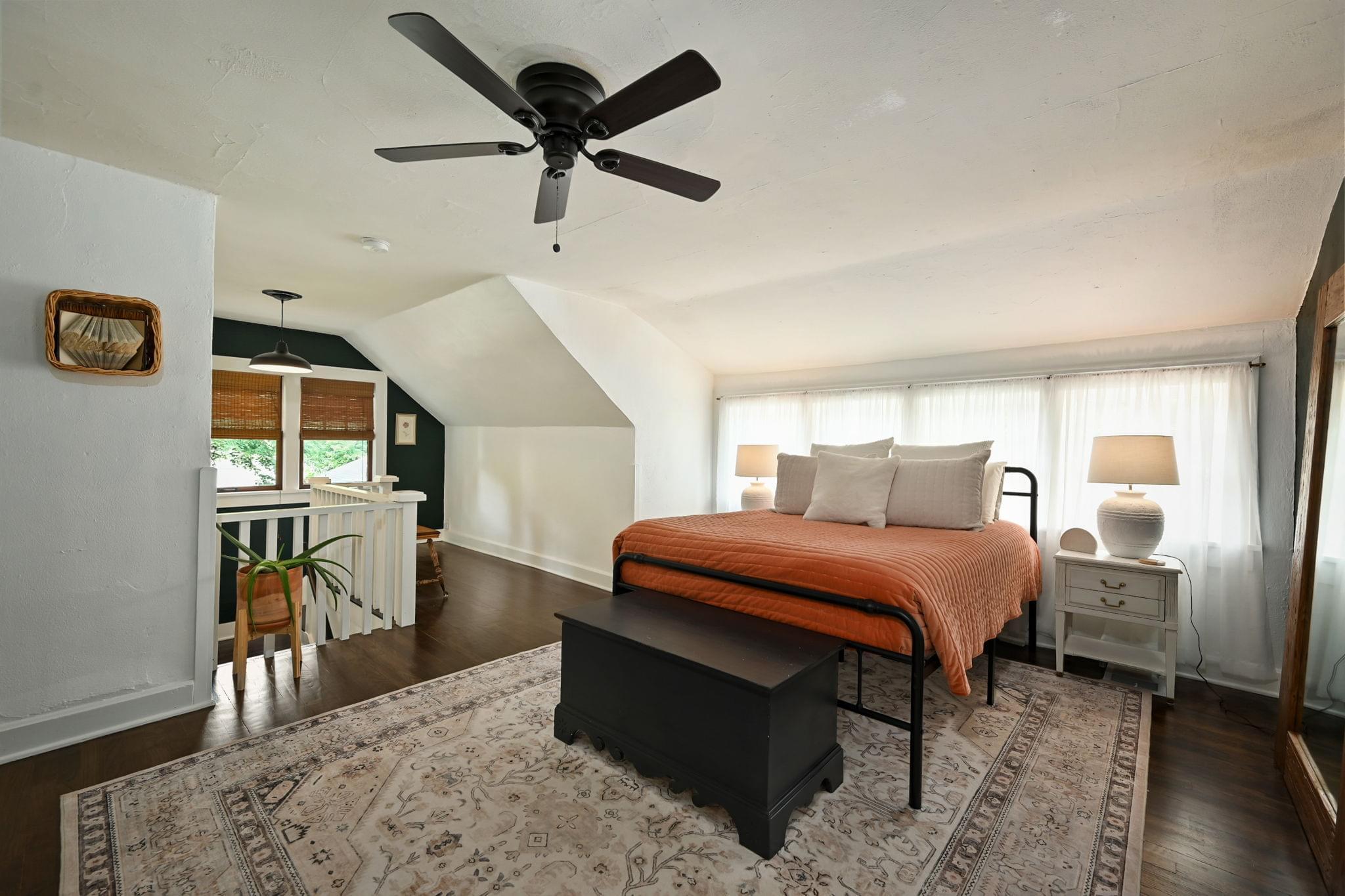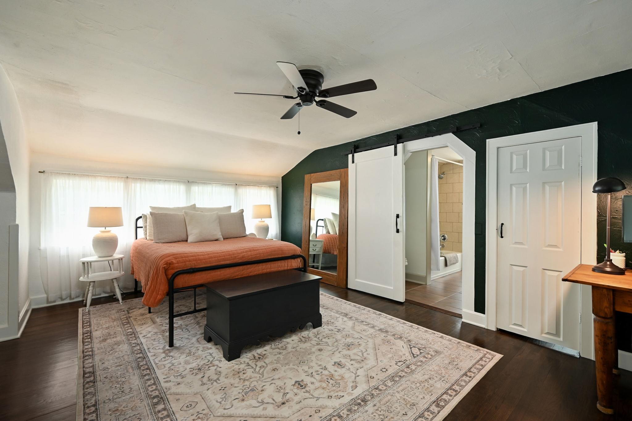 Two bedrooms are located on the main floor, with one currently set as a casual family room for movie nights or bonus hangout space. Upstairs, the primary suite stretches the imagination with a full bath, ample closet space, and a bonus lounge area that functions beautifully as a reading nook, home office, or your own retreat.