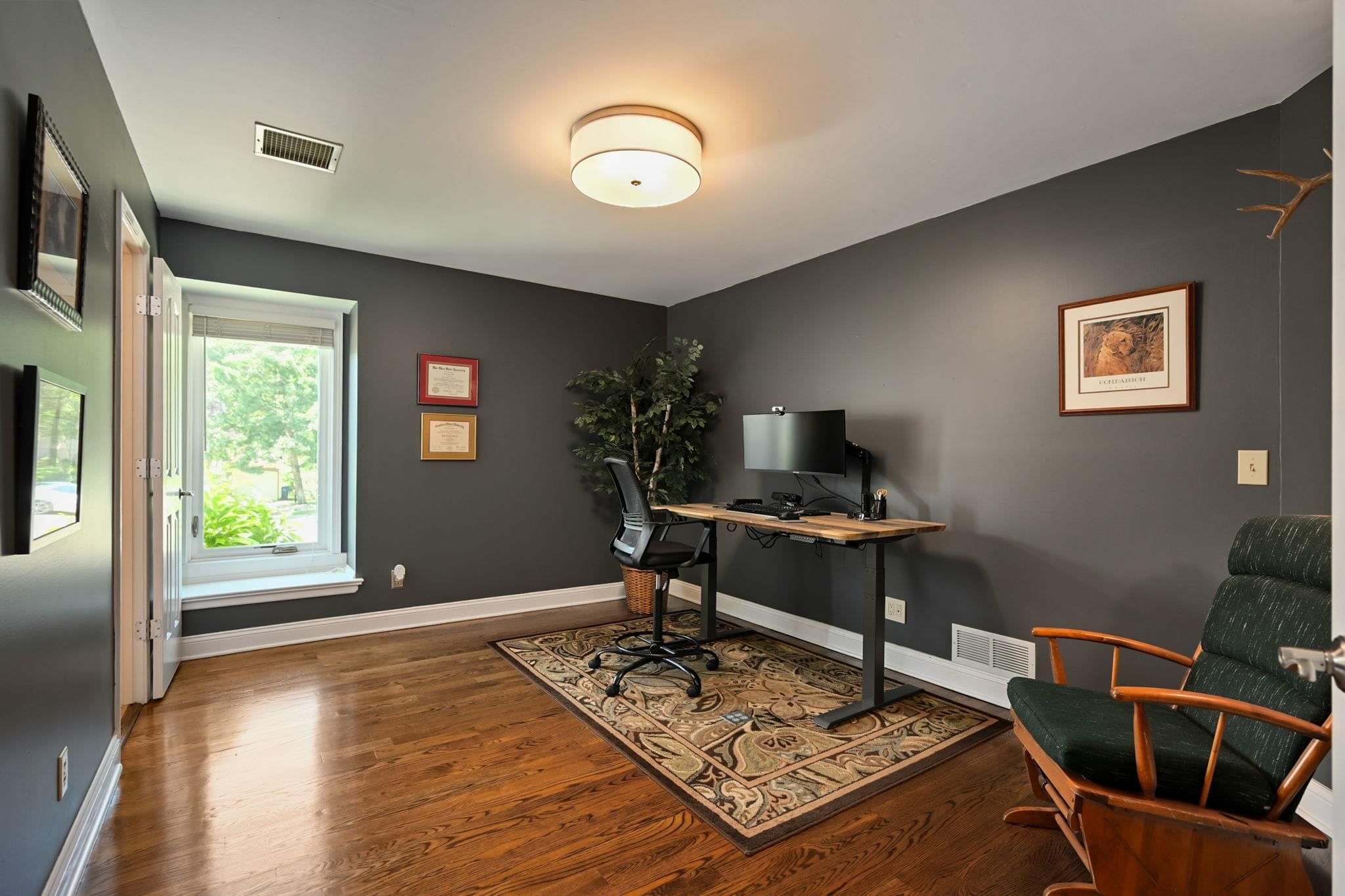 The great room features a custom tiled see-thru fireplace and large high-efficiency low-E Pella windows, filling the space with natural light. It provides a comfortable and stylish area for both relaxation and socializing.